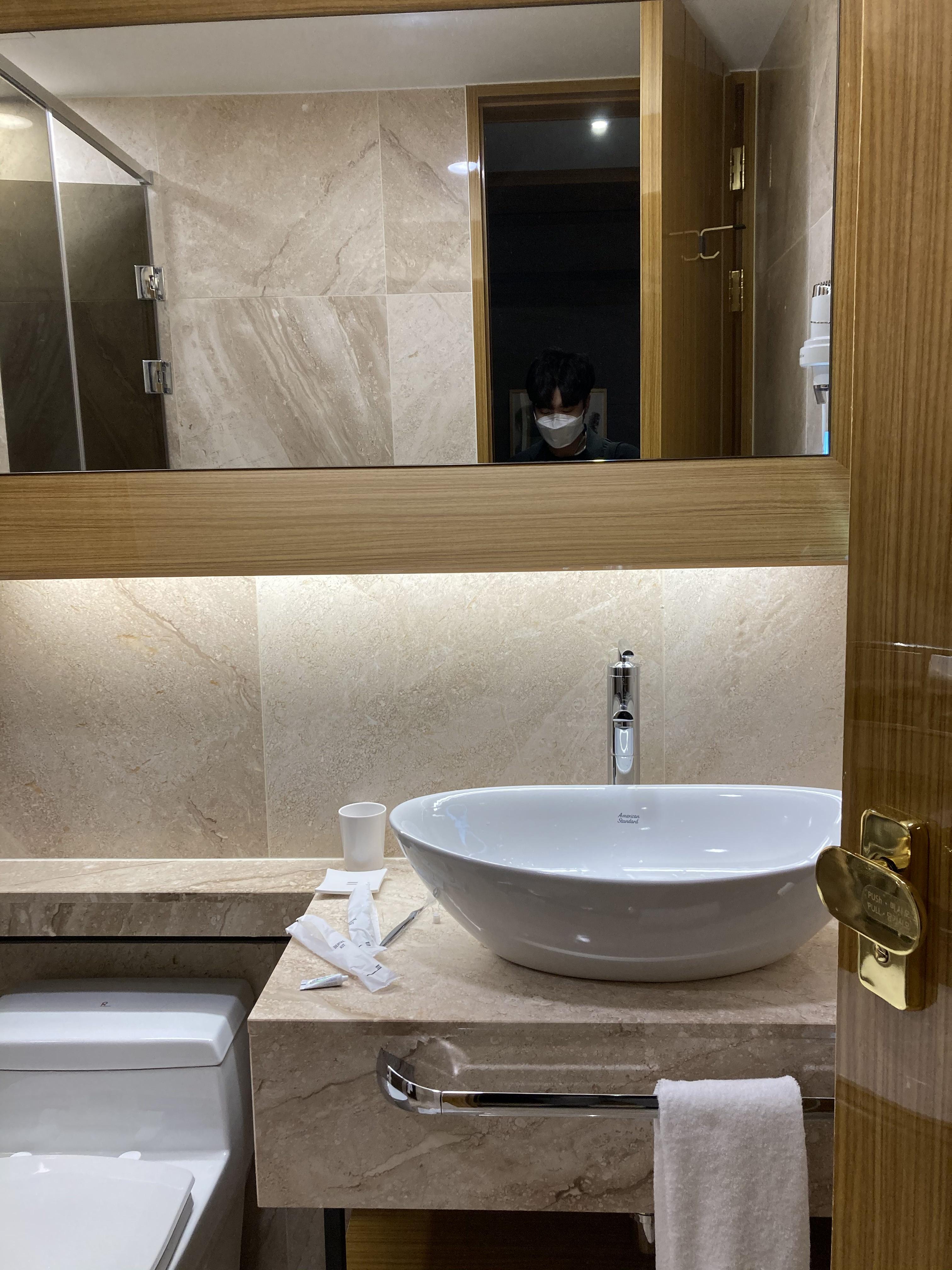 칫솔, 치약도 일회용 (향이 좋음) 으로 만족스러웠고 따듯한 물도 바로 나오고 수압도 만족