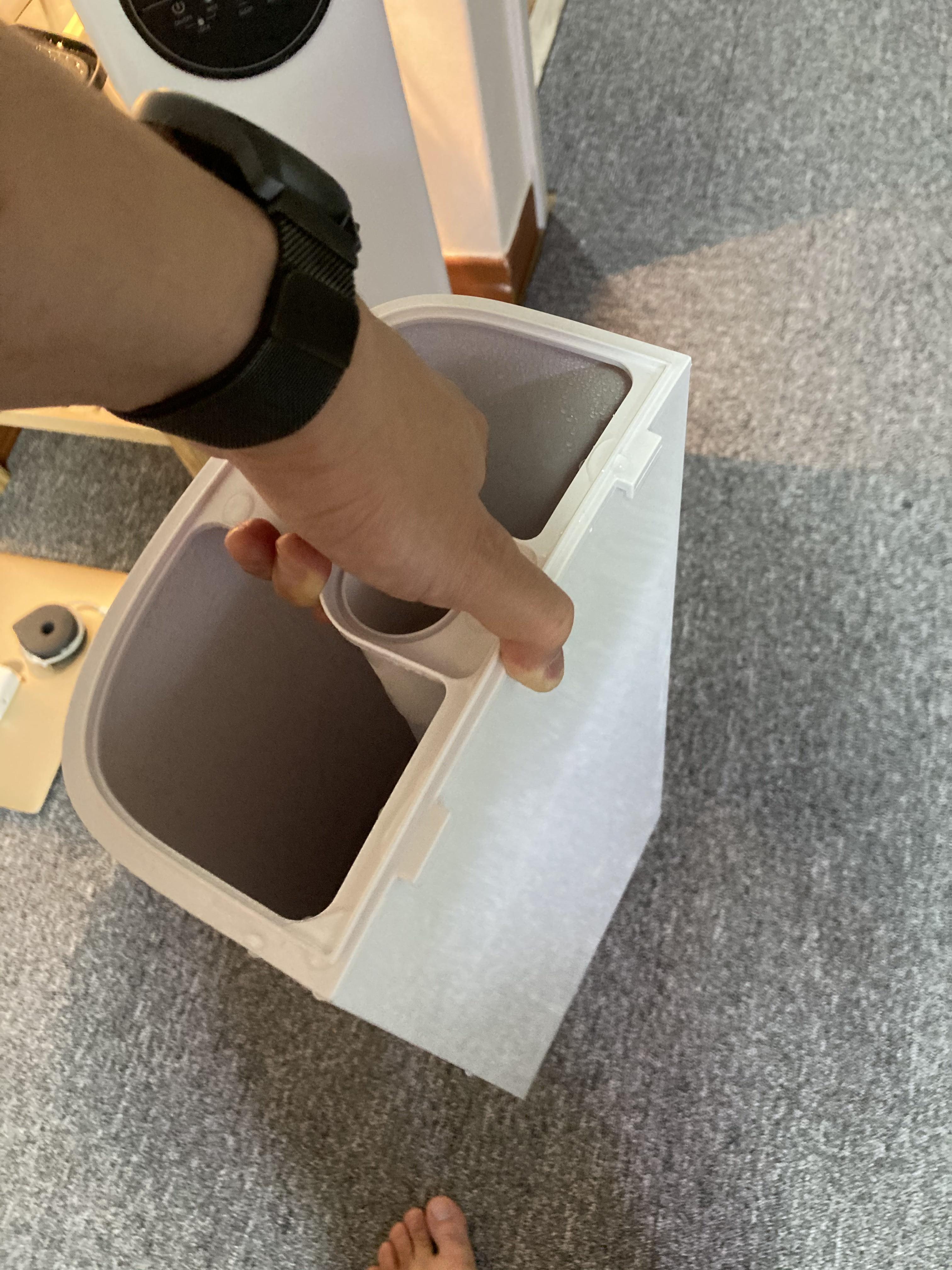 (밑 부분에 가습기가 생성되는 부분의 홈과 맞도록 되어 있기 때문에 세울 수 없는 구조이다)