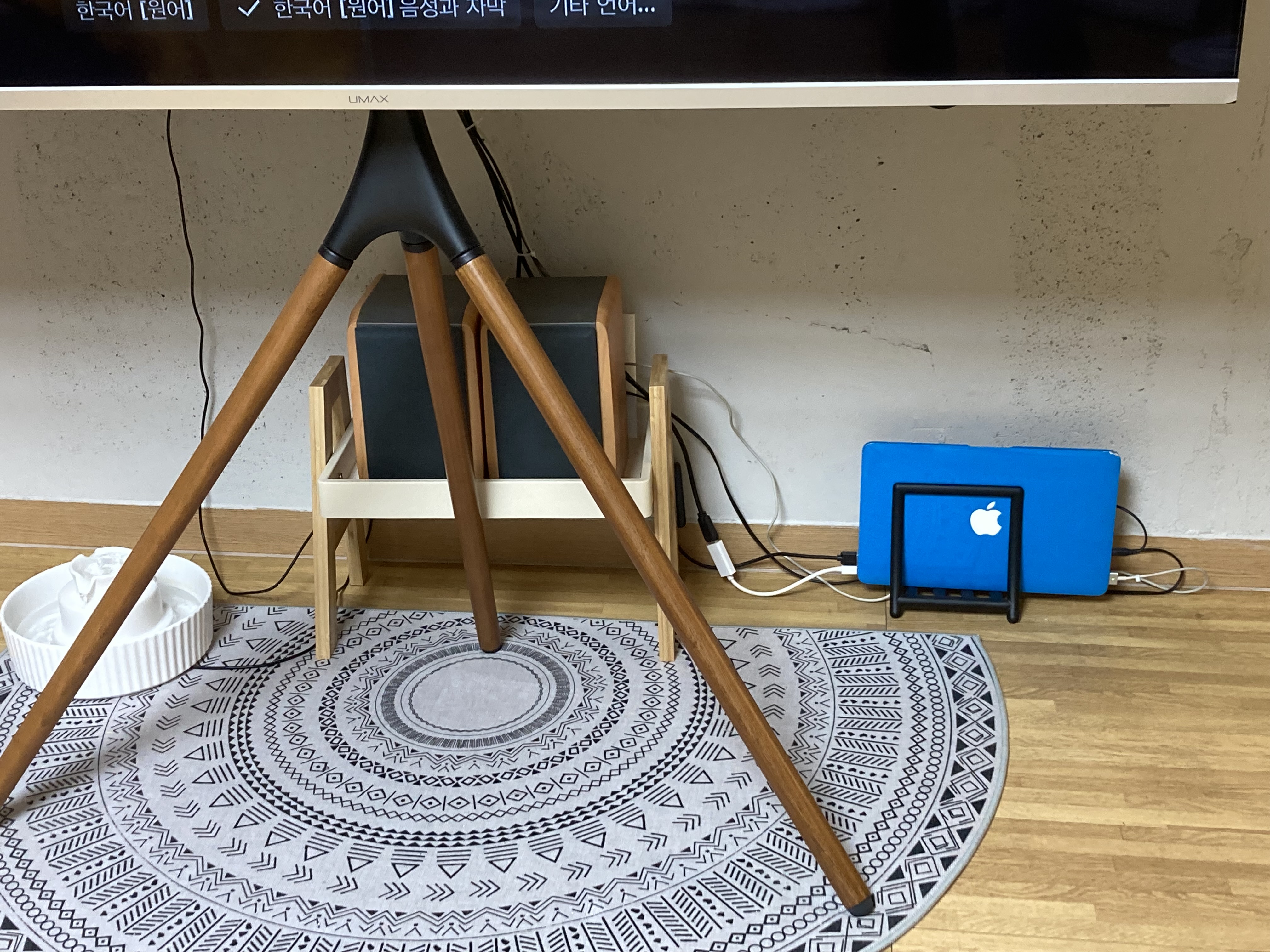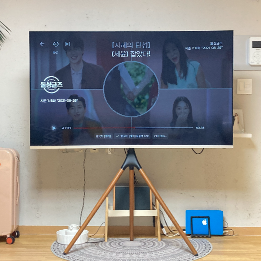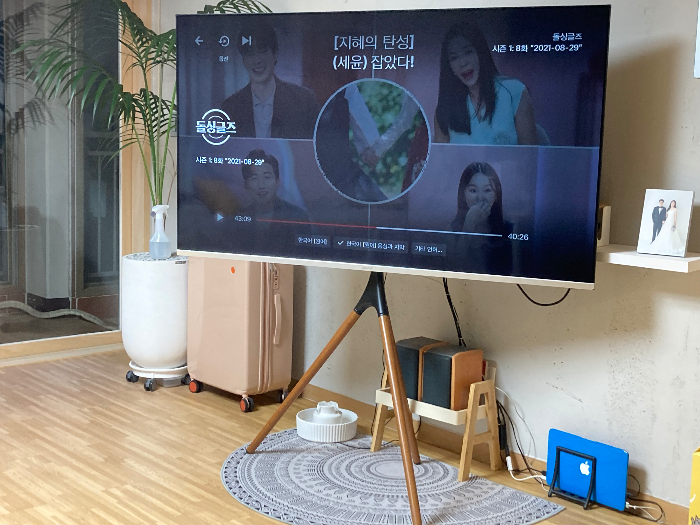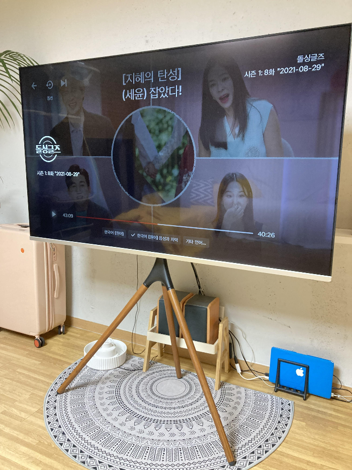벽걸이 티비보단 저는 이렇게 이젤형 티비거치대를 사용하는 걸 추천드립니다