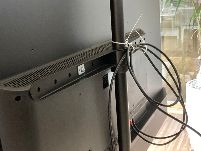 티비선이 지저분하게 밑으로 처지지 않도록 고정한 모습입니다